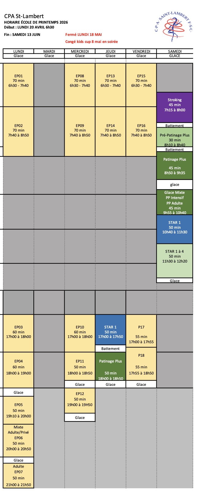Ouverture des inscriptions pour les membres du CPA St-Lambert Dimanche 9 février 2026, dimanche 1er mars 2026 pour tous